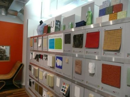 Visitors can spend their time perusing over hundreds of “material swatches” and then contact the material manufacturer directly for more samples or information. The Material Connexion also has an online database where users can search on the ~6,500 materials in their collection based on multiple criteria like heat resistance or renewability.