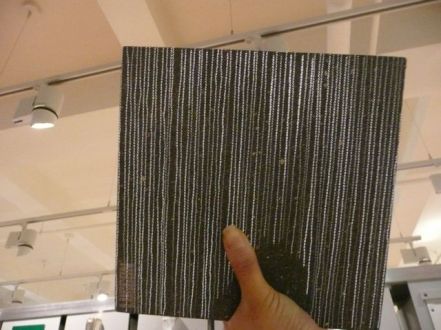 I next picked up what appeared to be a rock-like square. Lo and behold when that block stands up to the light! The material is actually translucent with streaks of light peering throughout, revealing my hand underneath. Imagine if Milan museums or Nagoya nightclubs use this material for chic designs…