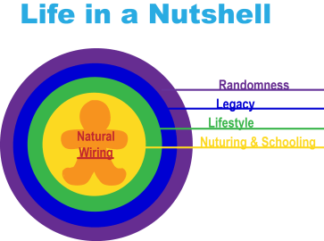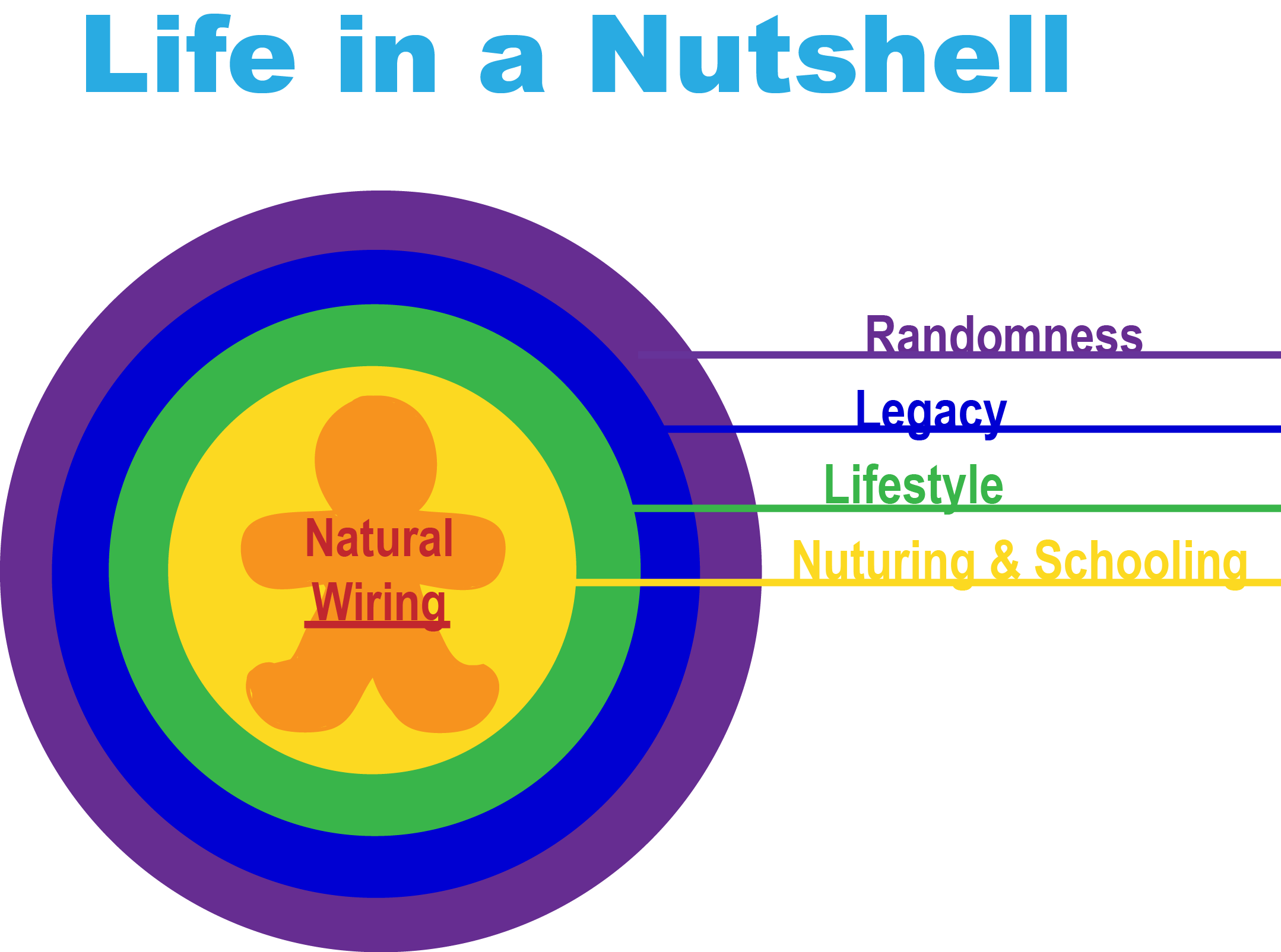 Nurturing & Schooling: we grow up with our natural wiring around some verisimilitude of family and hopefully get a dash of education. Although we can’t blame irascible parents for everything, we cannot expect the world based solely on a university or high school degree either.