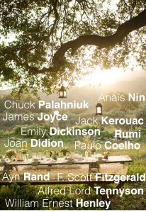 — Anais Nin, Ayn Rand, Chuck Palahniuk, dinner conversation, Emily Dickinson, F.Scott Fitzgerald, Jack Kerouc, James Joyce, Joan Didion, literature, Paulo Coelho, quotes, Rumi, William Ernest Henley